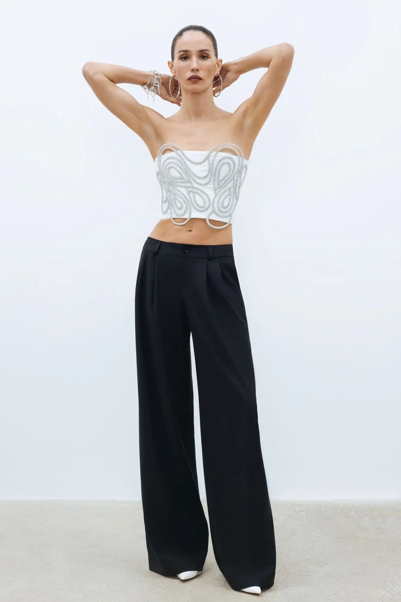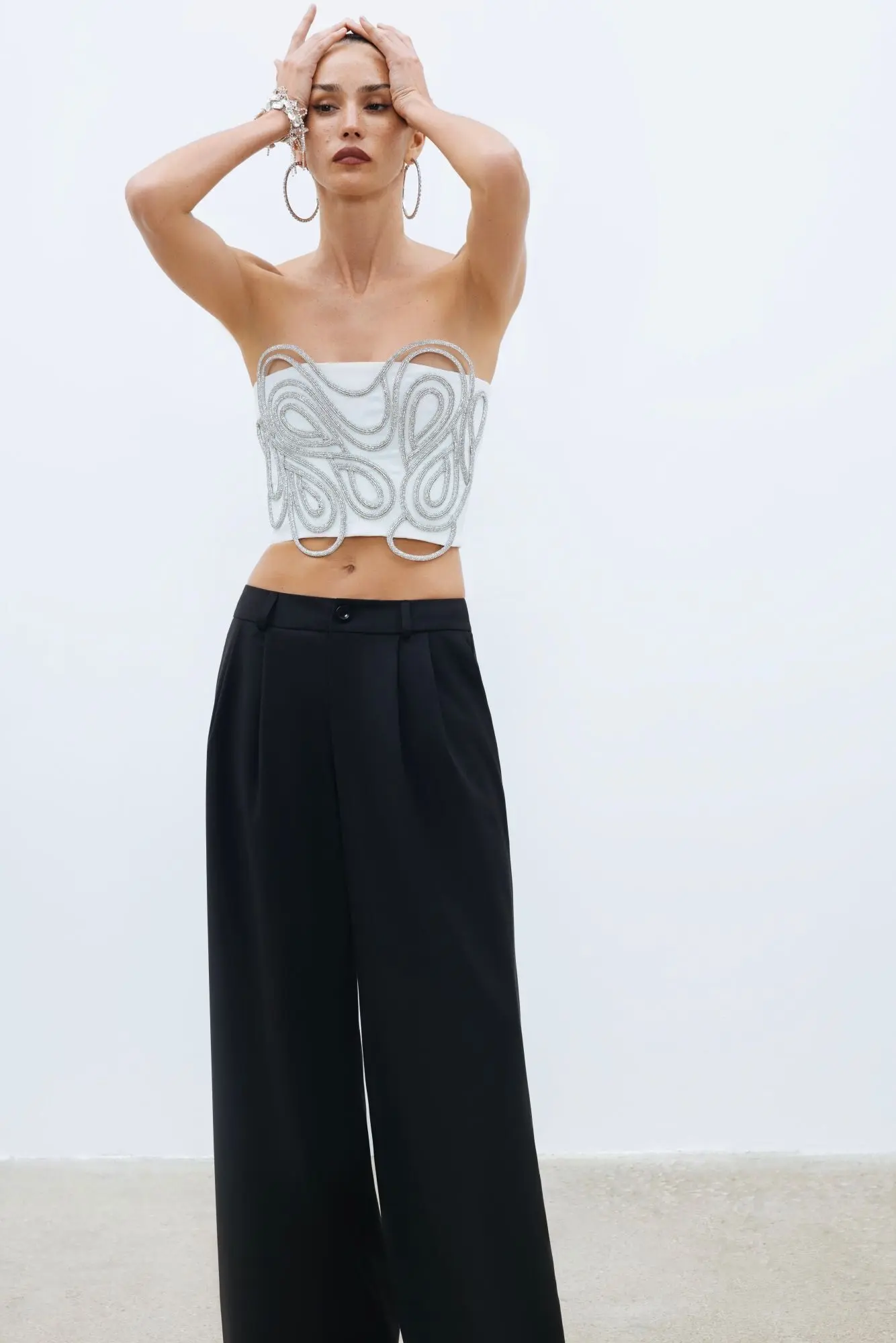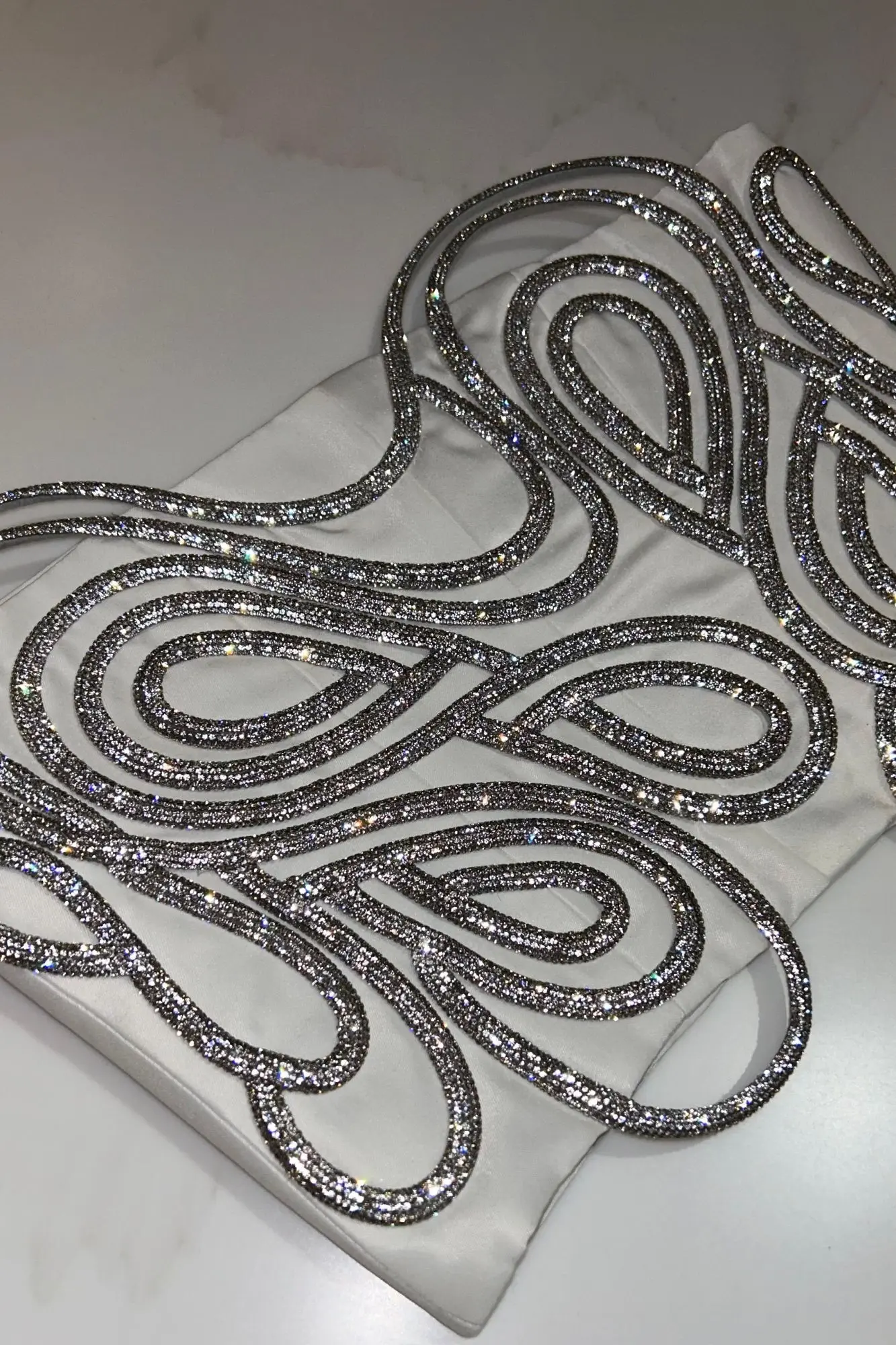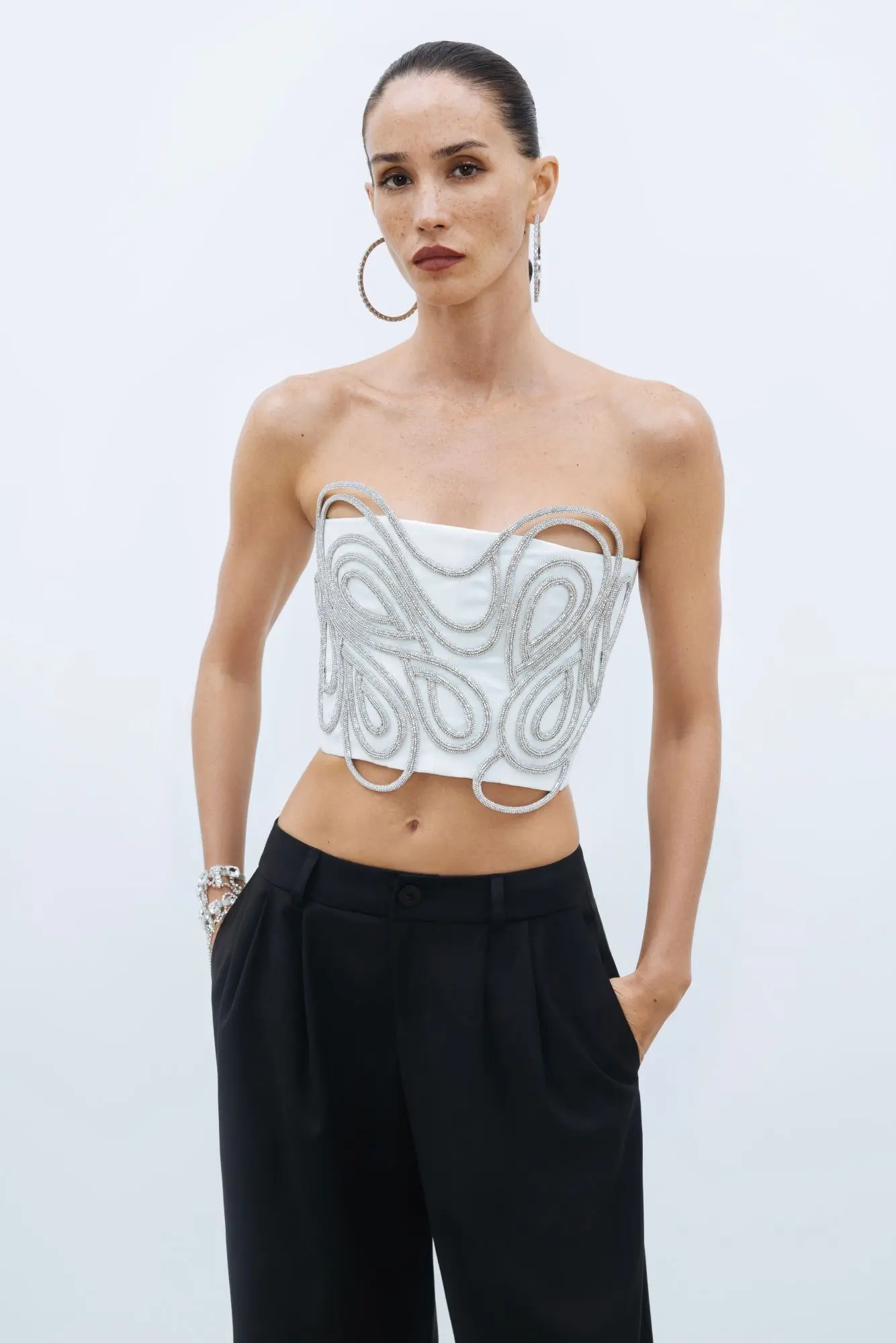 Корсет с фигурной стразовой аппликацией. Не эластичный, шнуровка на спине.