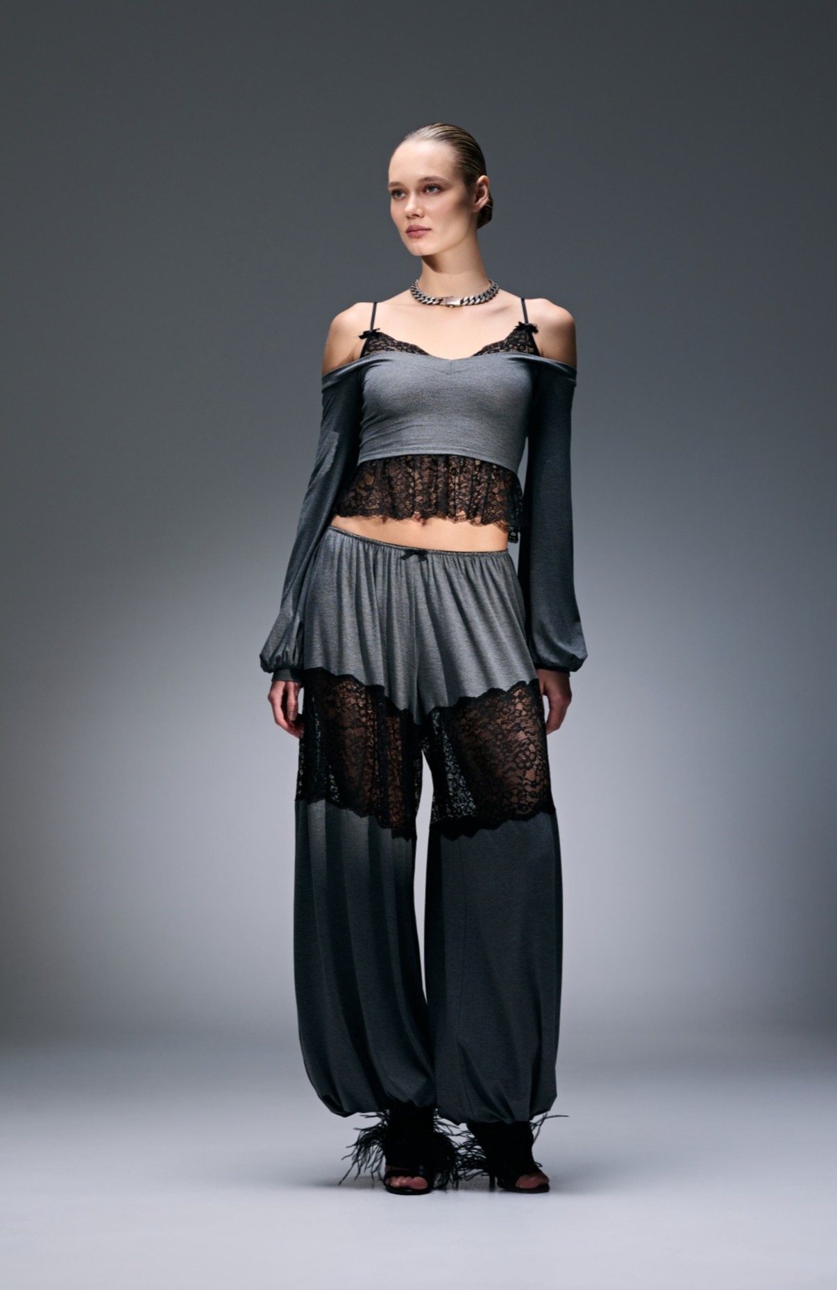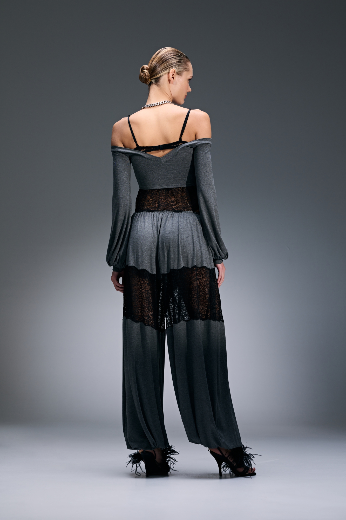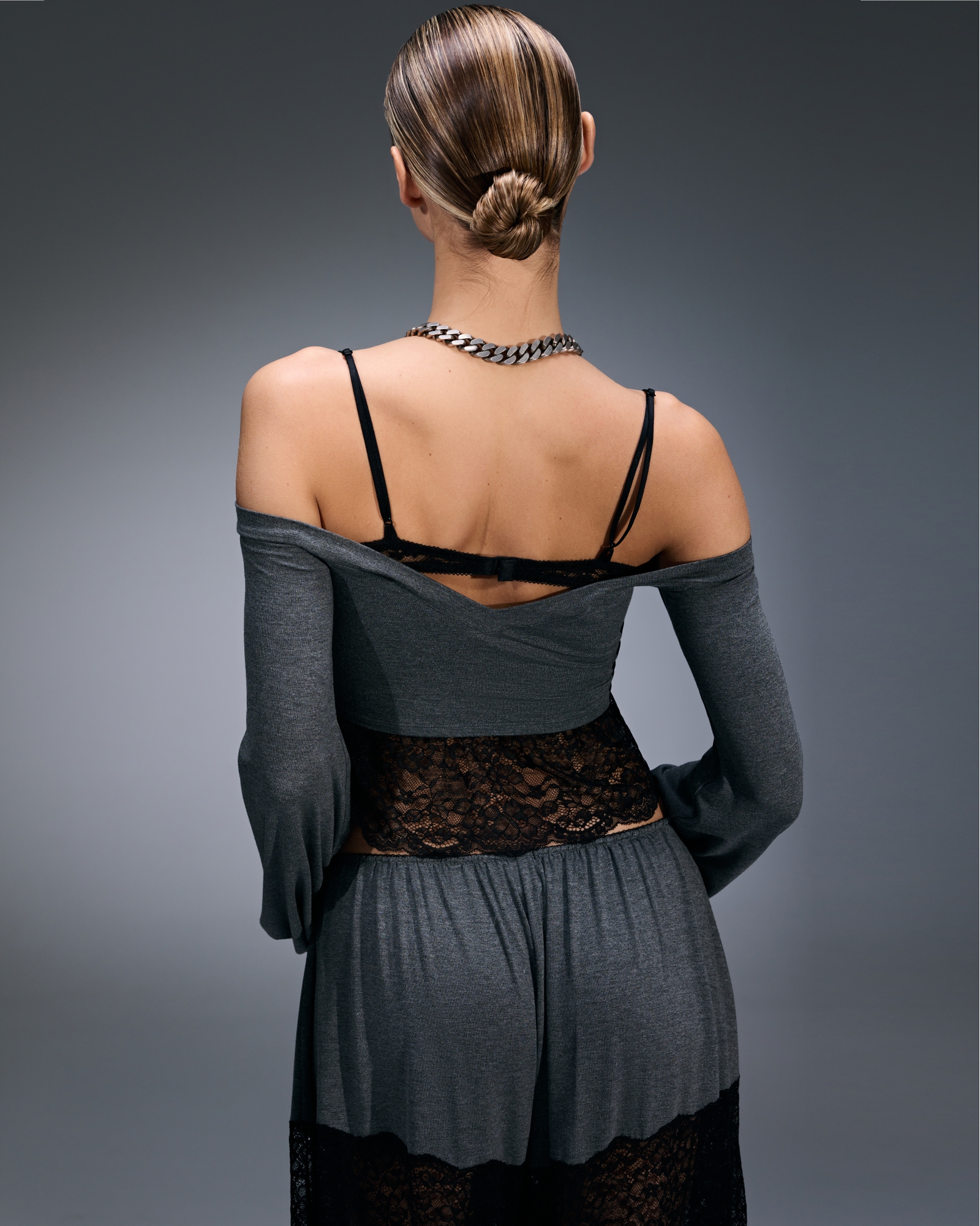 Трикотажный топ с кружевом. Бельевая застёжка от бюстгалтера на спине, лямки с регуляторами.