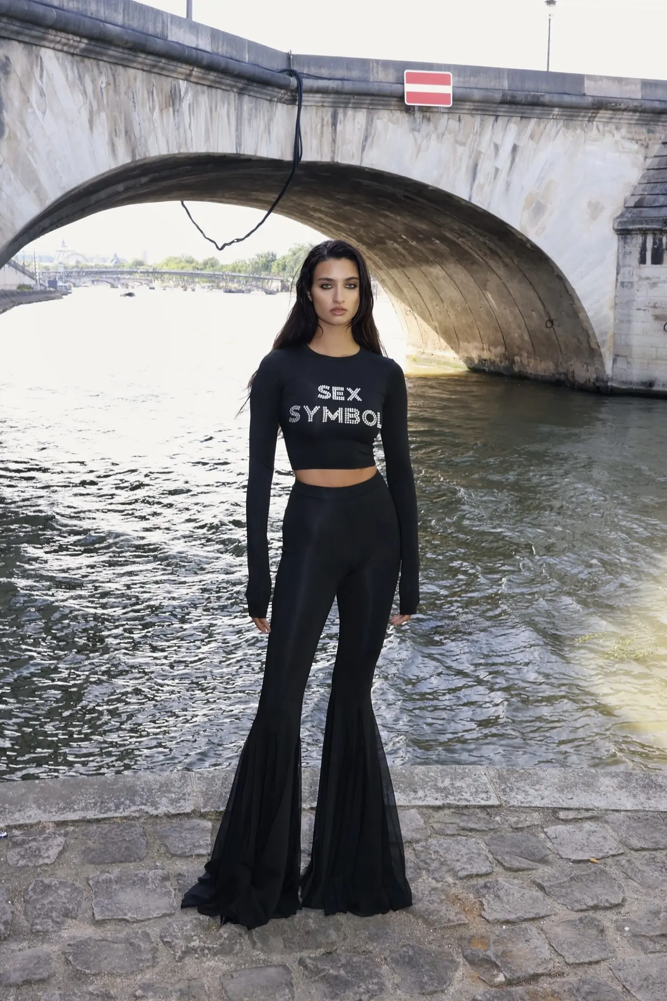 Укороченный топ из эластичного трикотажа с аппликацией из страз.