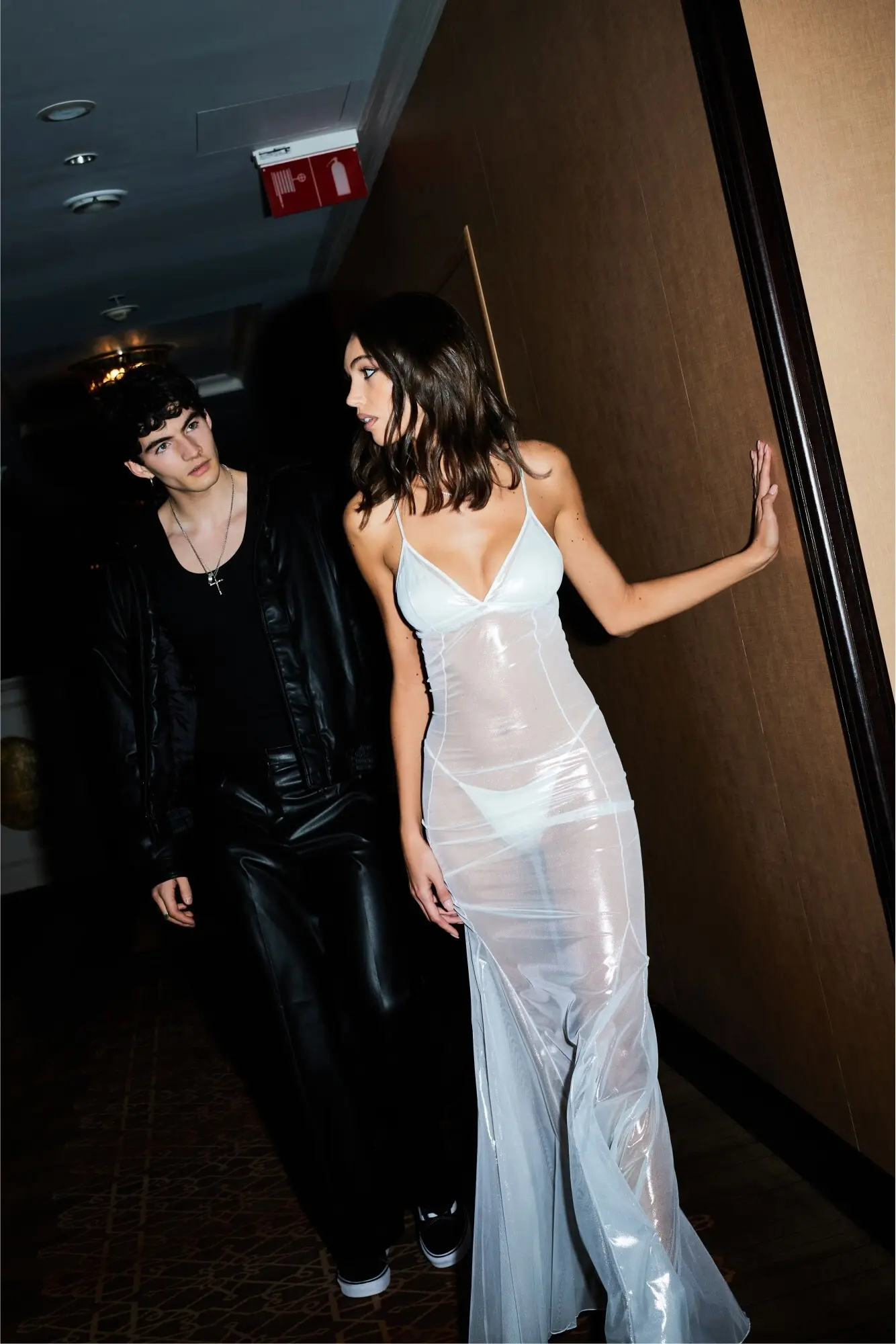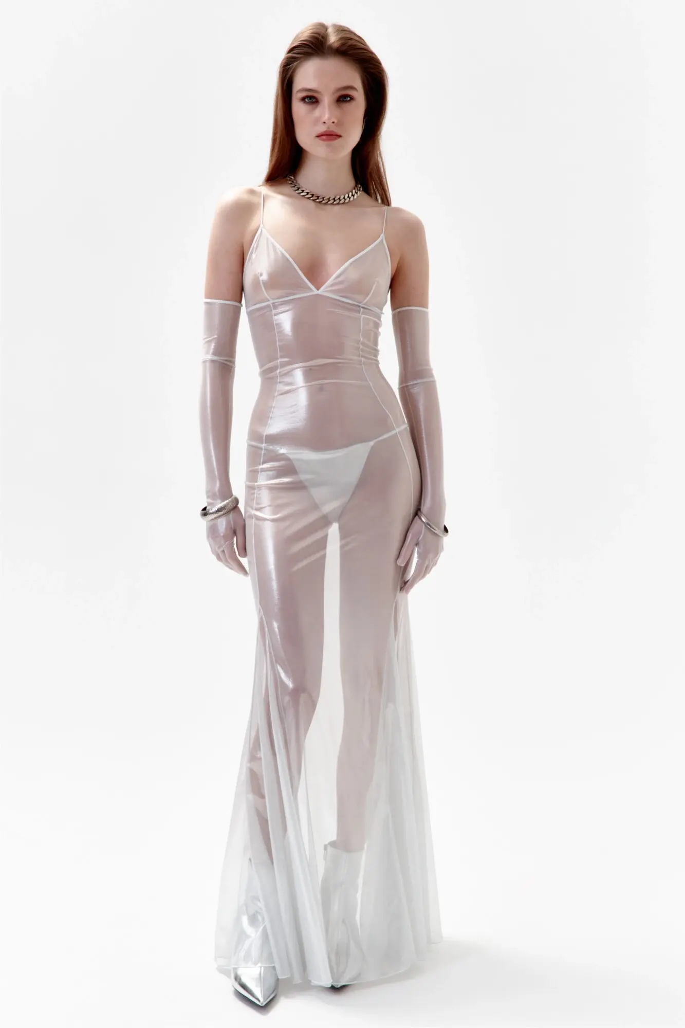 Изделие первого слоя, бельевого типа из однослойной сетки. Тонкие бретели, приталенный силуэт.