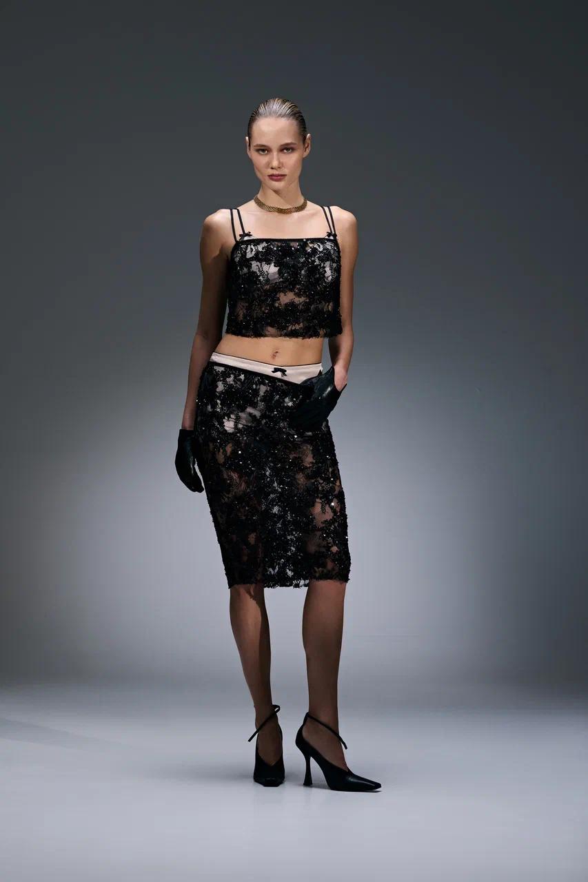 Бельевая однослойная юбка из кружева, расшитого бисером. Просим обратить внимание, что изделия изготовляют индивидуально под параметры клиента. Бельевой сатиновый комплект Perle продается отдельно.